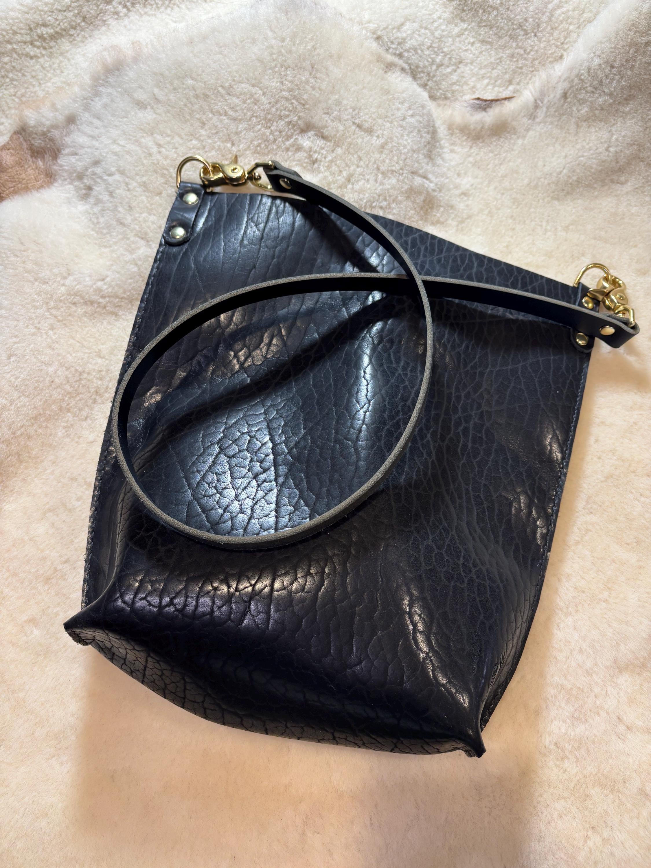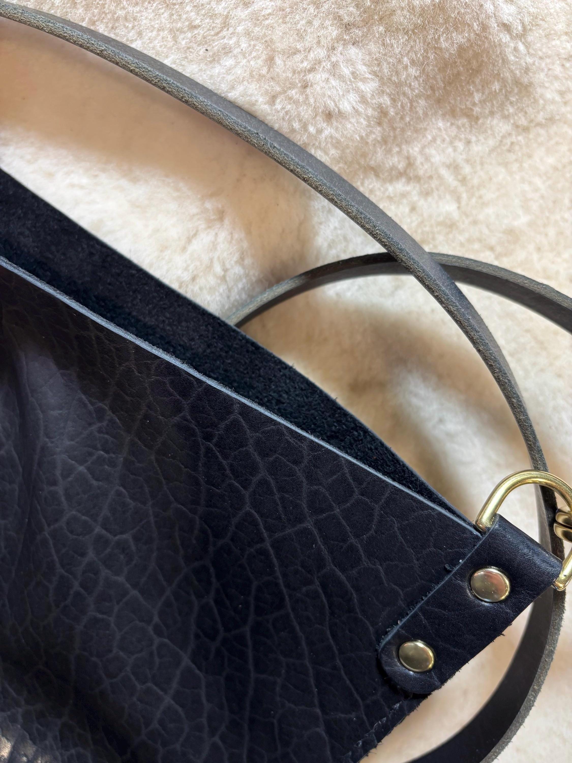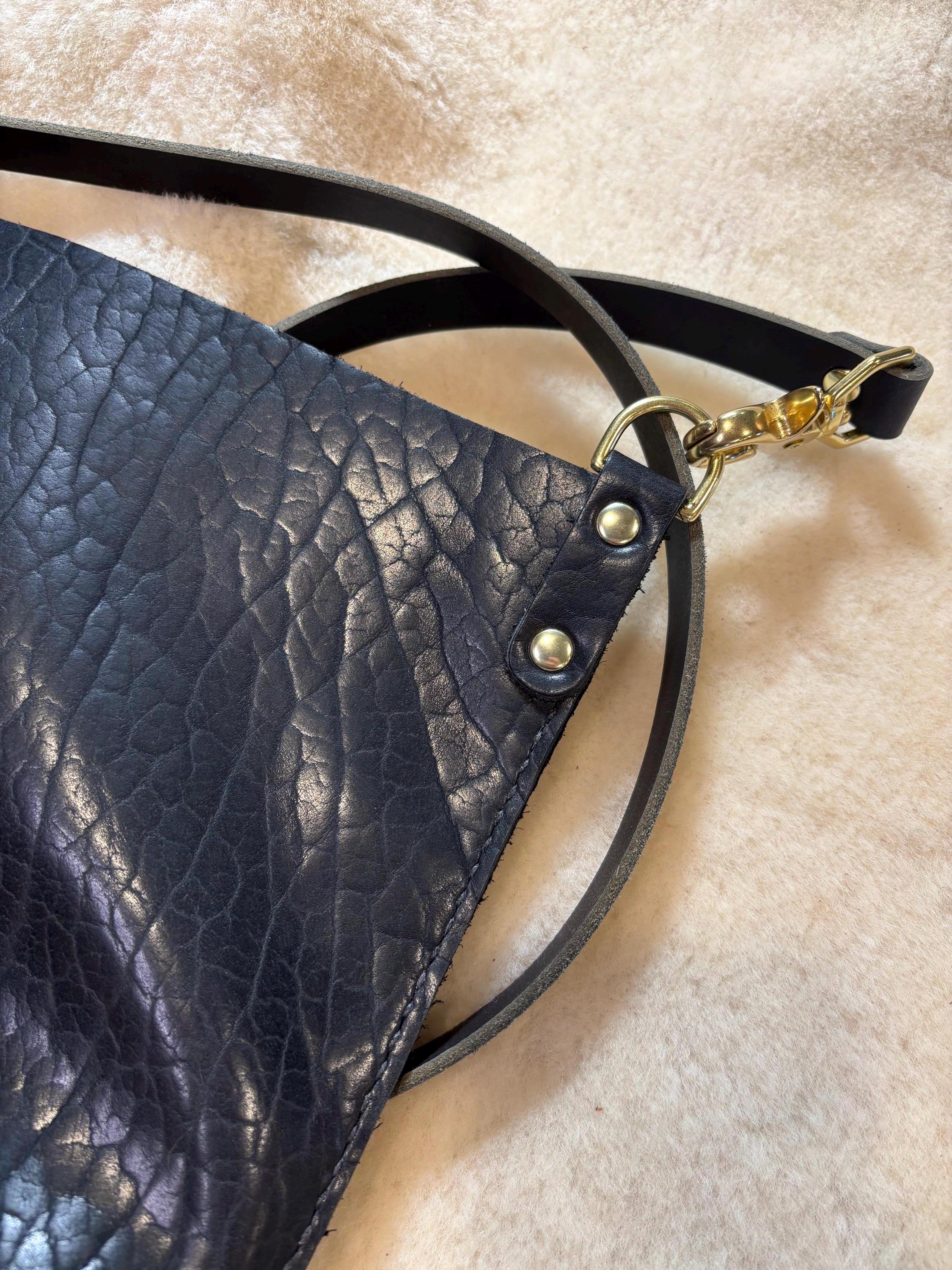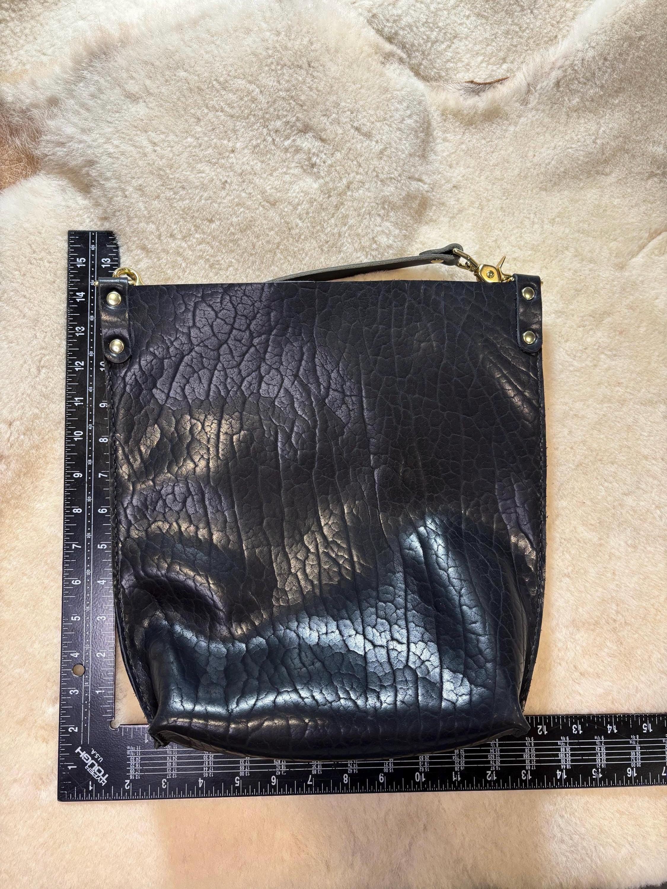 Beautiful Srunken Charcoal hand made Bison leather crossbody bag.